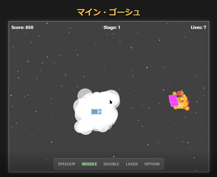 インストール不要、ブラウザですぐに遊べる本格横スクロールシューティング「マイン・ゴーシュ」が登場!強化された自機と、新たに加わった究極の必殺技で、絶望的な状況をも打破せよ!