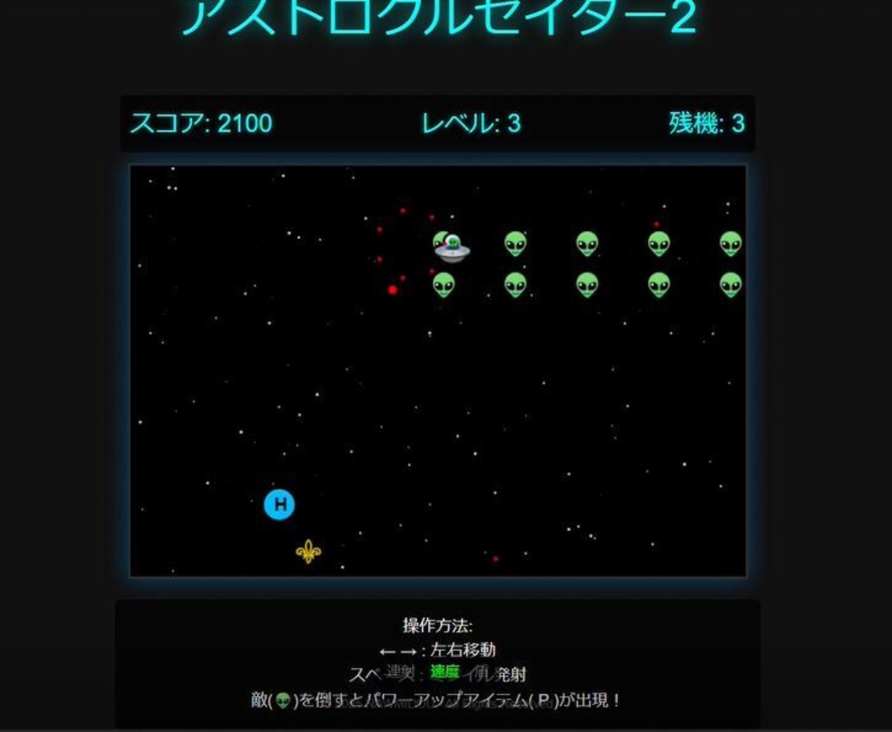 ミサイル発射: スペースキー (または W / ↑ キー)
