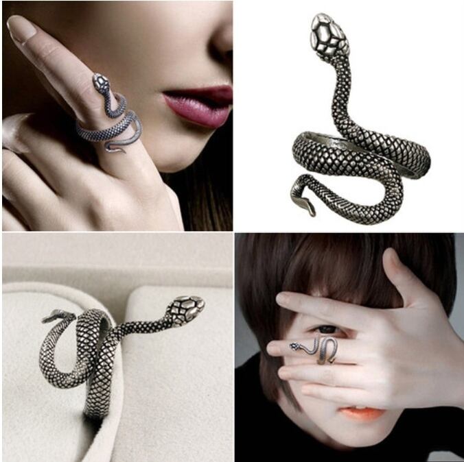 指に絡みつくような蛇がインパクト絶大なリングです。