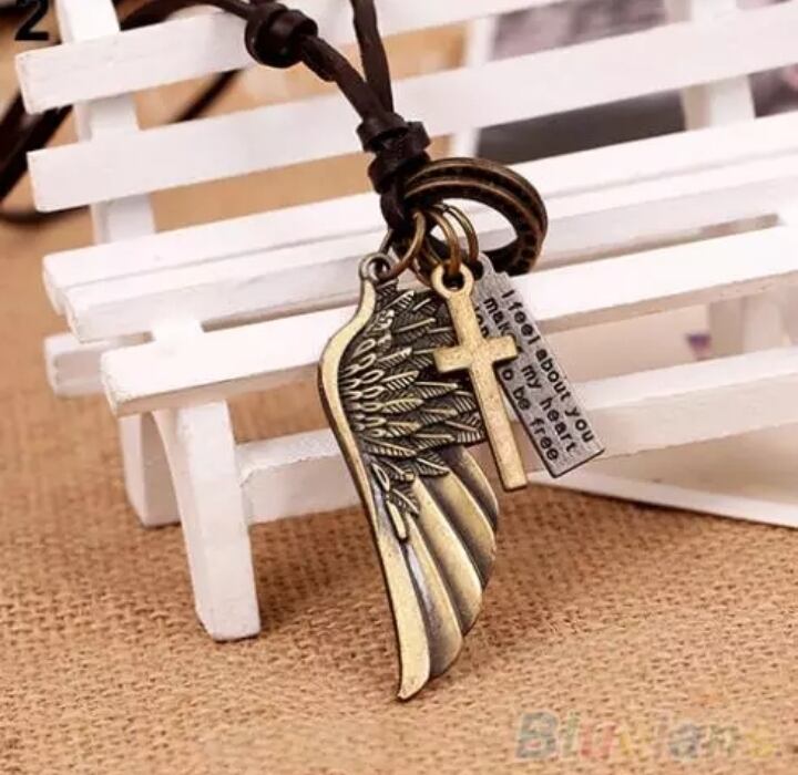 ヴィンテージ アンティーク エンジェルウィング メンズ レザー ネックレスチャーム ペンダント