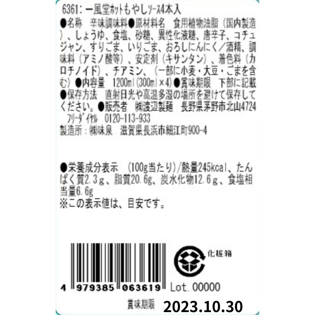 一風堂 ホット もやし ソース 4本セット 名物 逸品 おかず 一品 肴 隠れ 人気メニュー 4本 セット 混ぜるだけ