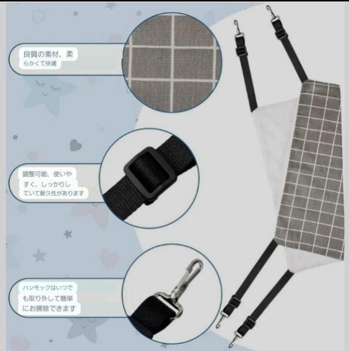 簡単に取り付け可能: フックを使って、簡単にゲージやお気に入りの場所に取り付け可能。どこでも猫ちゃんがくつろげる空間を演出します。