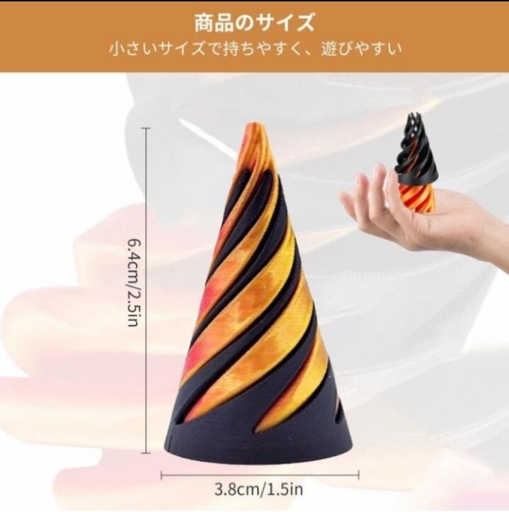 ネットで話題沸騰中の「3Dコーン」は、見るだけでも触れても楽しいスパイラルおもちゃです。高品質で環境に優しいPLA素材を使用し、驚くべき耐久性を実現しています。最先端の3Dプリント技術で細部にまでこだわり、滑らかな仕上がりが自慢です。